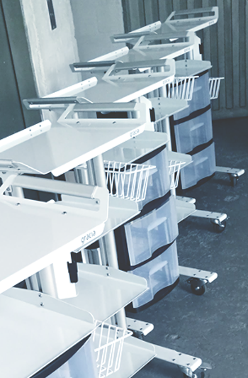 Al igual que el resto del portafolio, surge un carro de diseño modular que permite variadas configuraciones y posibilidades de personalización, dando soluciones y herramientas a los héroes de la salud.