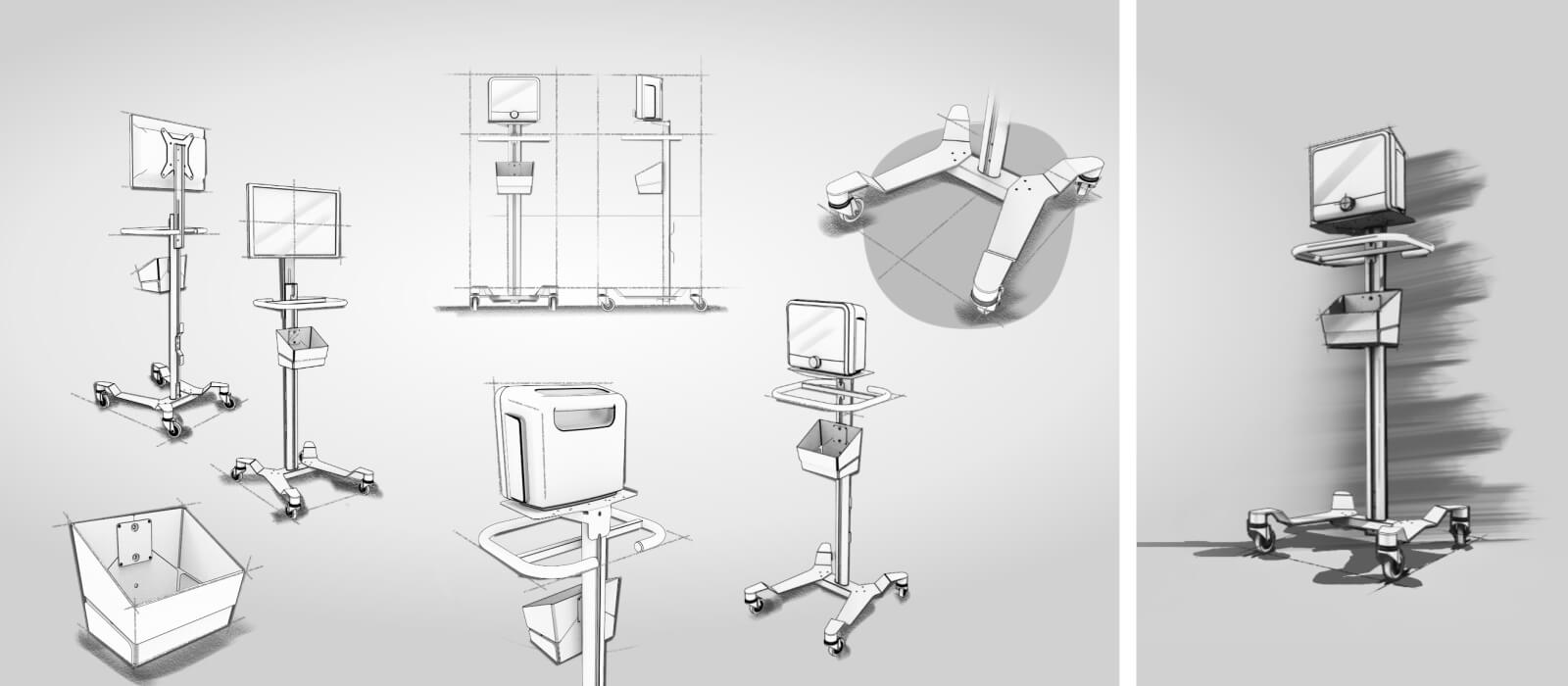 El nuevo soporte móvil debía ser una plataforma modular de costo competitivo, con mayor funcionalidad y capaz de integrar diferentes accesorios, para lograr ser mucho más que un soporte para monitores de signos vitales.