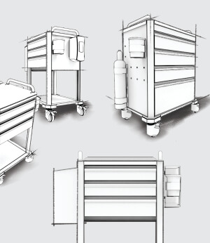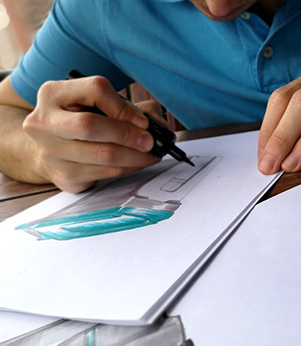 Mediante unos primeros trazos en papel y otras herramientas de visualización, delineamos alternativas de lo que será el producto en su apariencia estética, sus proporciones y sus atributos funcionales.